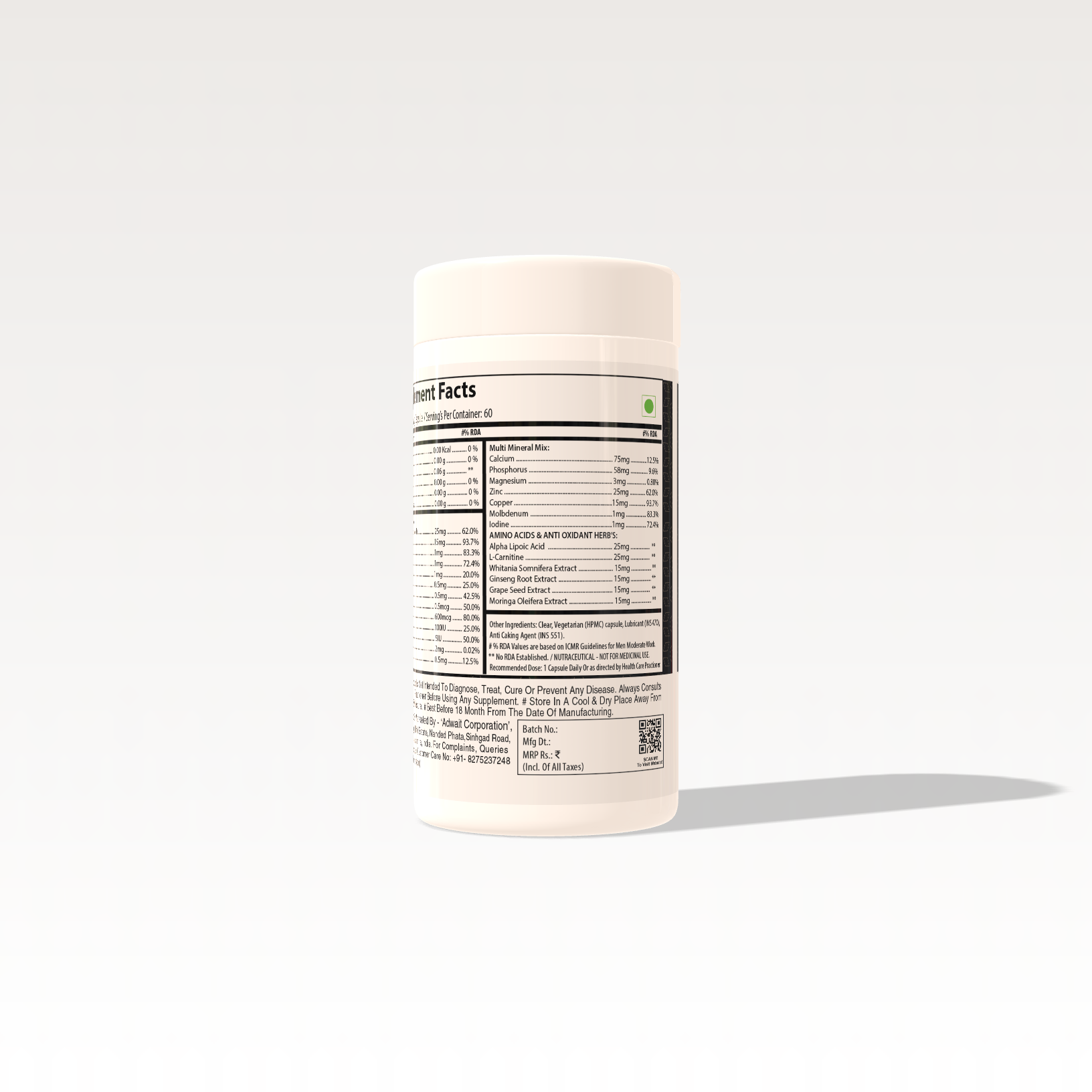 Complete Mineral Support – Includes Calcium, Phosphorus, Zinc, Copper, Iodine & Magnesium for strong bones, immunity & hormonal balance.