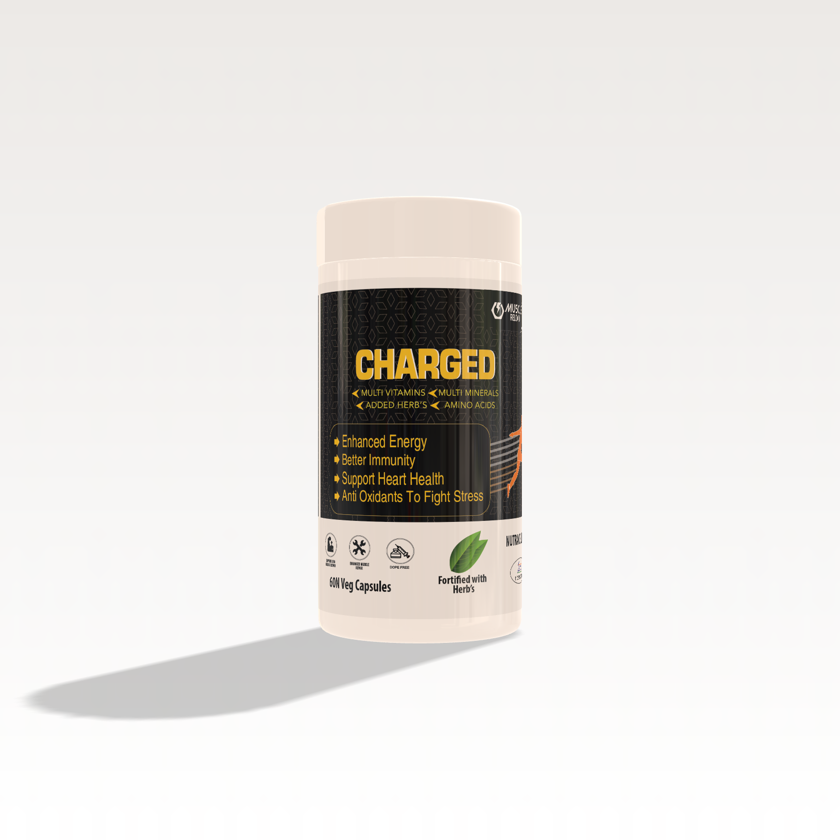 CHARGED is a premium multi-nutrient supplement designed to fuel your body with essential vitamins, minerals, powerful herbs, and amino acids for daily vitality, strength, and immunity. This advanced formula may supports energy metabolism, muscle recovery, and antioxidant defense, making it the perfect supplement for active individuals.