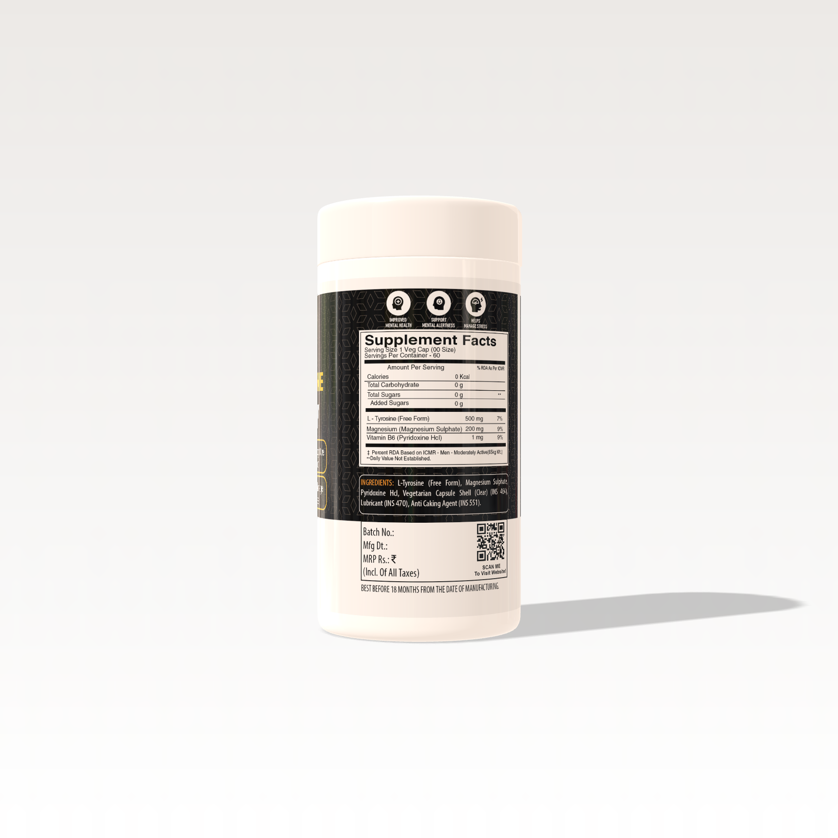 Clean Formula, Maximum Potency – Each capsule delivers 500 mg pure L-Tyrosine with no added sugar or artificial ingredients. 100% vegetarian-friendly.